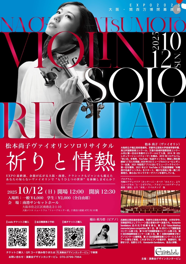 松本 尚子ヴァイオリンソロリサイタル @南港サンセットホール です。